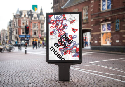 Dit experimentele heb ik overgenomen door grillige lijnen in water, veroorzaakt door een motortje, te fotograferen en deze om te vormen naar een lijnenspel die linkt met de avant garde stijl. Daarin zijn ogen toegevoegd die ook te zien waren in oude video’s van hem. Die versterken het hypnotische effect van zijn muziek op de luisteraar, wat ik hierbij ook probeer te bereiken op de aanschouwer van de affiche.
